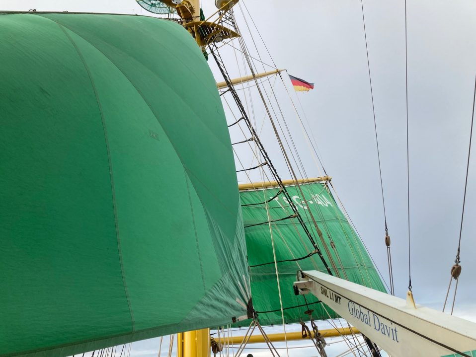 Mittagsposition: Kiel, Tirpitzmole Musik durch die Lautsprecher morgens um 7:00 Uhr: allgemeines Wecken am ersten Bordtag im Hafen in Kiel. Heute ist der Tag vollgepackt mit Sicherheitseinweisungen und Ausbildung im Rigg. Gurtausgabe, Riggbegehung, … jede Minute ist ausgefüllt. ‚Zwischendurch gibt es Essen: Frühstück, Mittagessen, Kaffee & Kuchen und Abendessen –…...