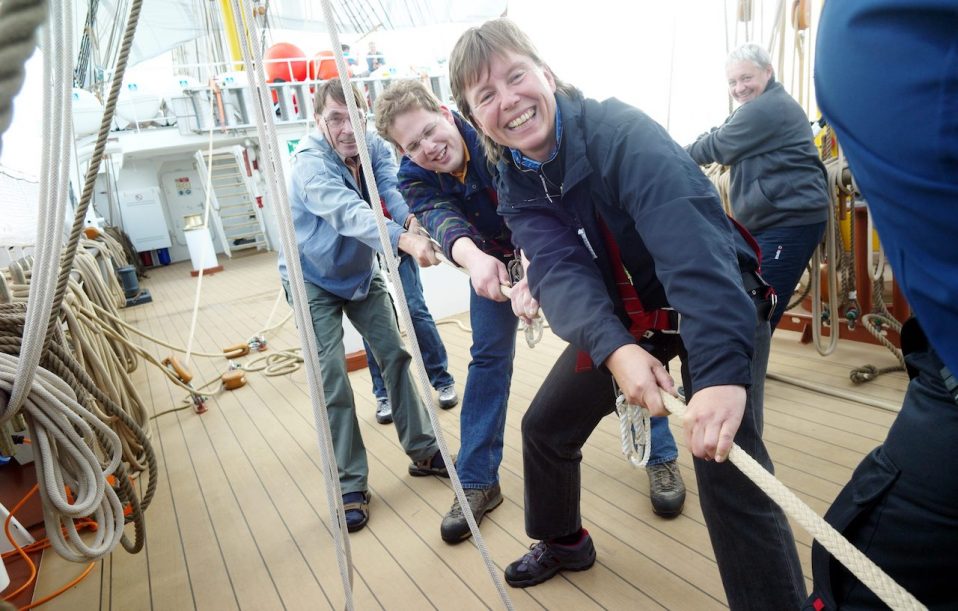 Tagesbericht 29.07.2020 Mittagsposition: 57°38.7N 010°36.9’E (Skagen Reede) Wind SW 7-8 Das Wetter: Starkwind, zum Teil mit Schauern Arbeit in luftiger Höhe – Riggprofis am Werk Als wir am Morgen auf die Reede vor Skagen zulaufen, wo wir – diesmal wegen Wind von ganz vorn unter Maschine – unser Ankermanöver fahren,…...
