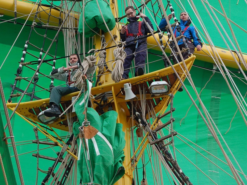 Tagesbericht Törn: 105.20 Datum: 02.03.2020 Mittagsposition: 45° 47,5’N 007° 22,3‘W Das Wetter: 25-8/8 Titel/Überschrift: Das gerissene Segel Nach einer unsanften Nacht wurde die Wache mit einem gerissenen Segel überrascht. Es handelte sich hierbei um das Großobermarsseegel. Hierfür musste ein neues Segel herangeschafft werden. Bei letzterem spielte die Muskelkraft und Teamarbeit der…...
